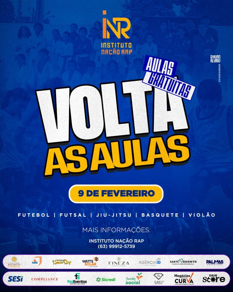 O Instituto Nação Rap inicia, nesta segunda-feira (9 de fevereiro), uma nova etapa de atividades esportivas e culturais gratuitas para crianças e adolescentes de Palmas. As ações acontecem sempre no contraturno escolar, reforçando o papel do esporte e da cultura como ferramentas de inclusão social.